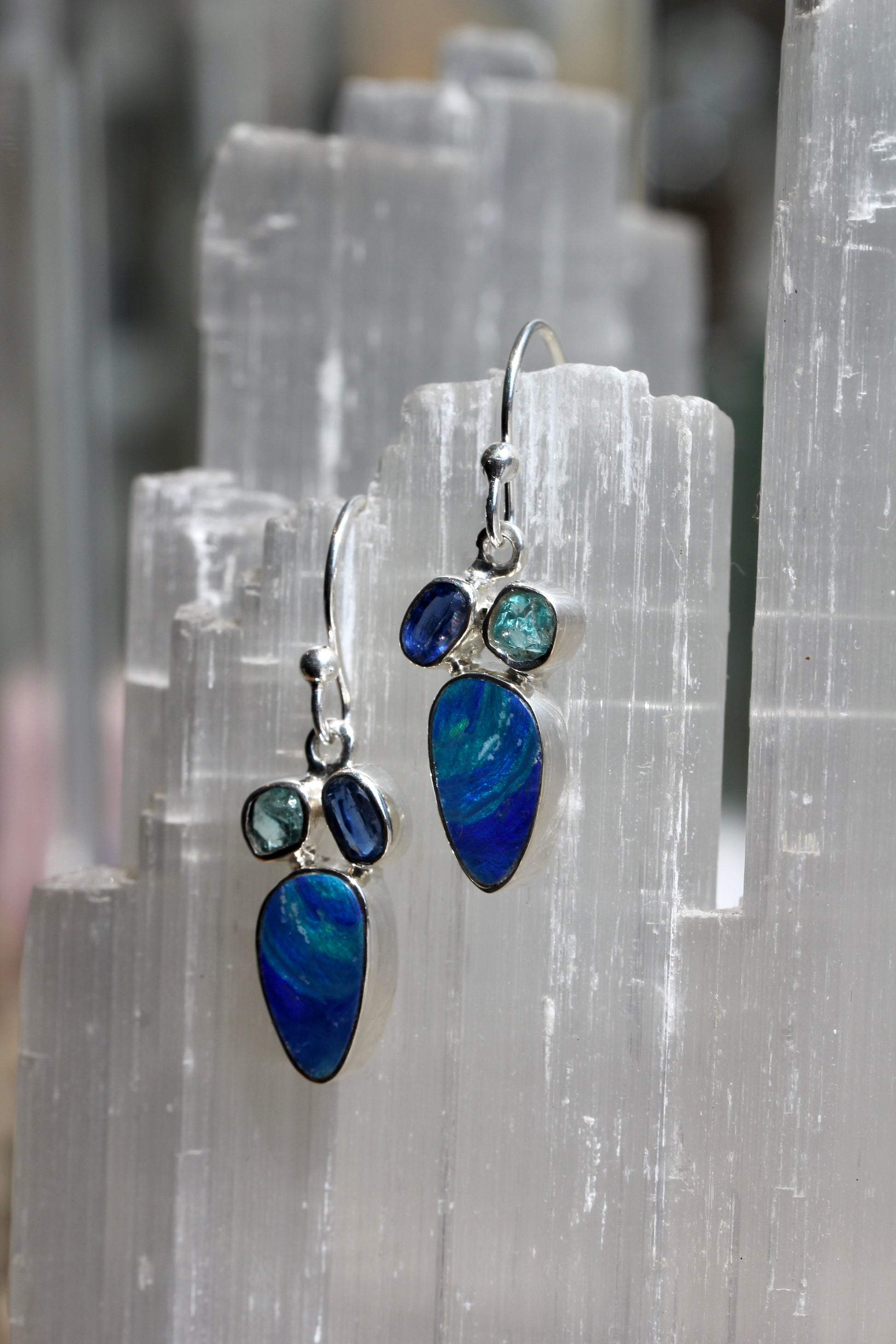 Australian Opal Kyanite Apatite Earrings