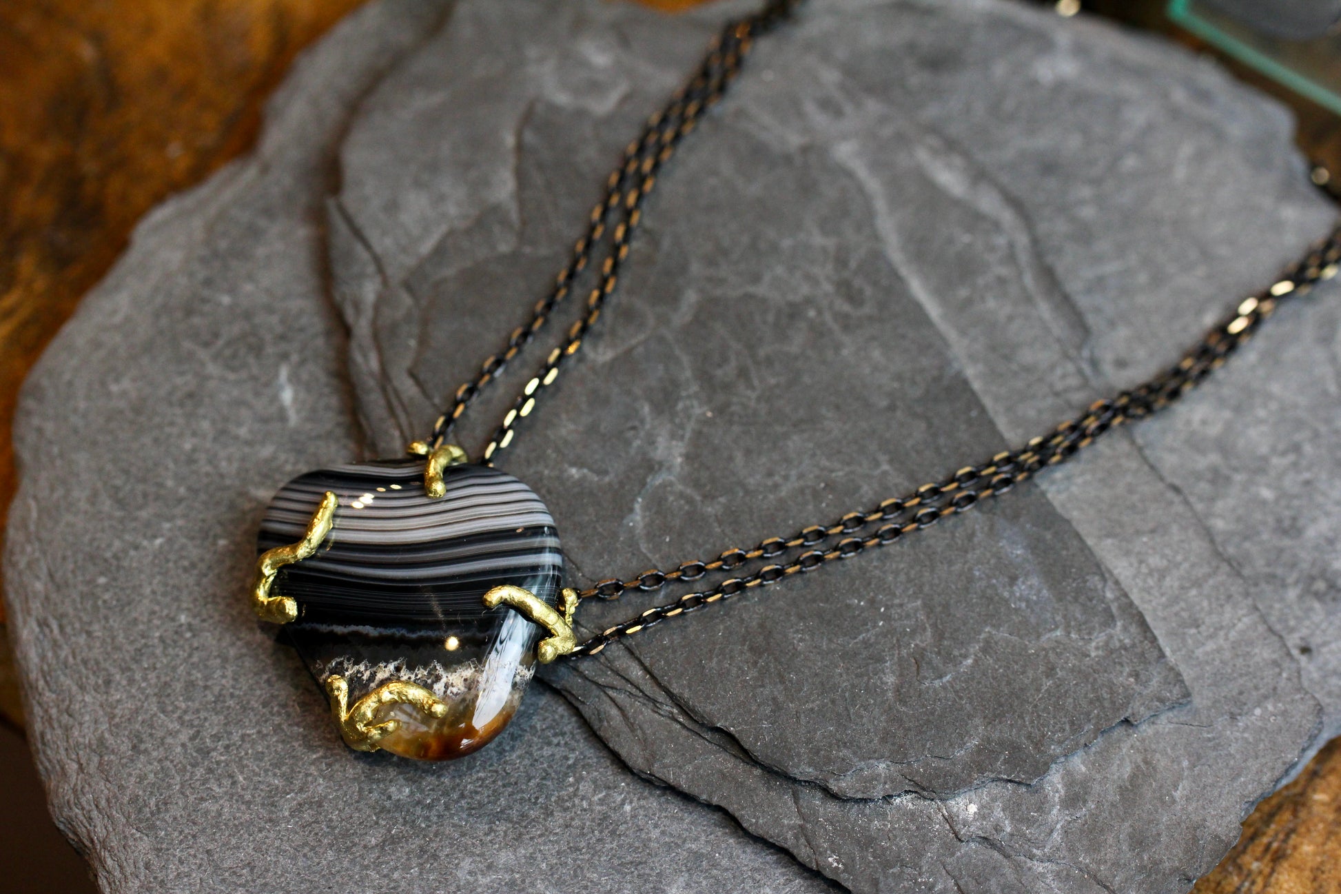 Banded Agate Brass Necklace