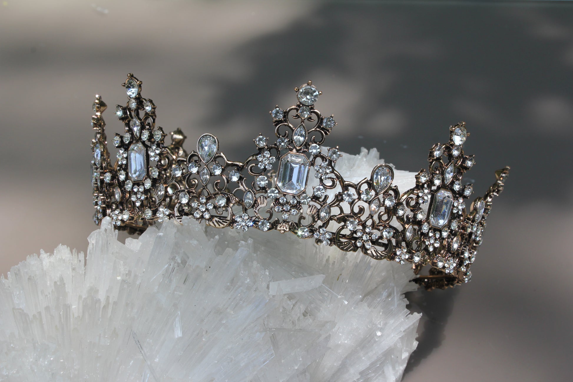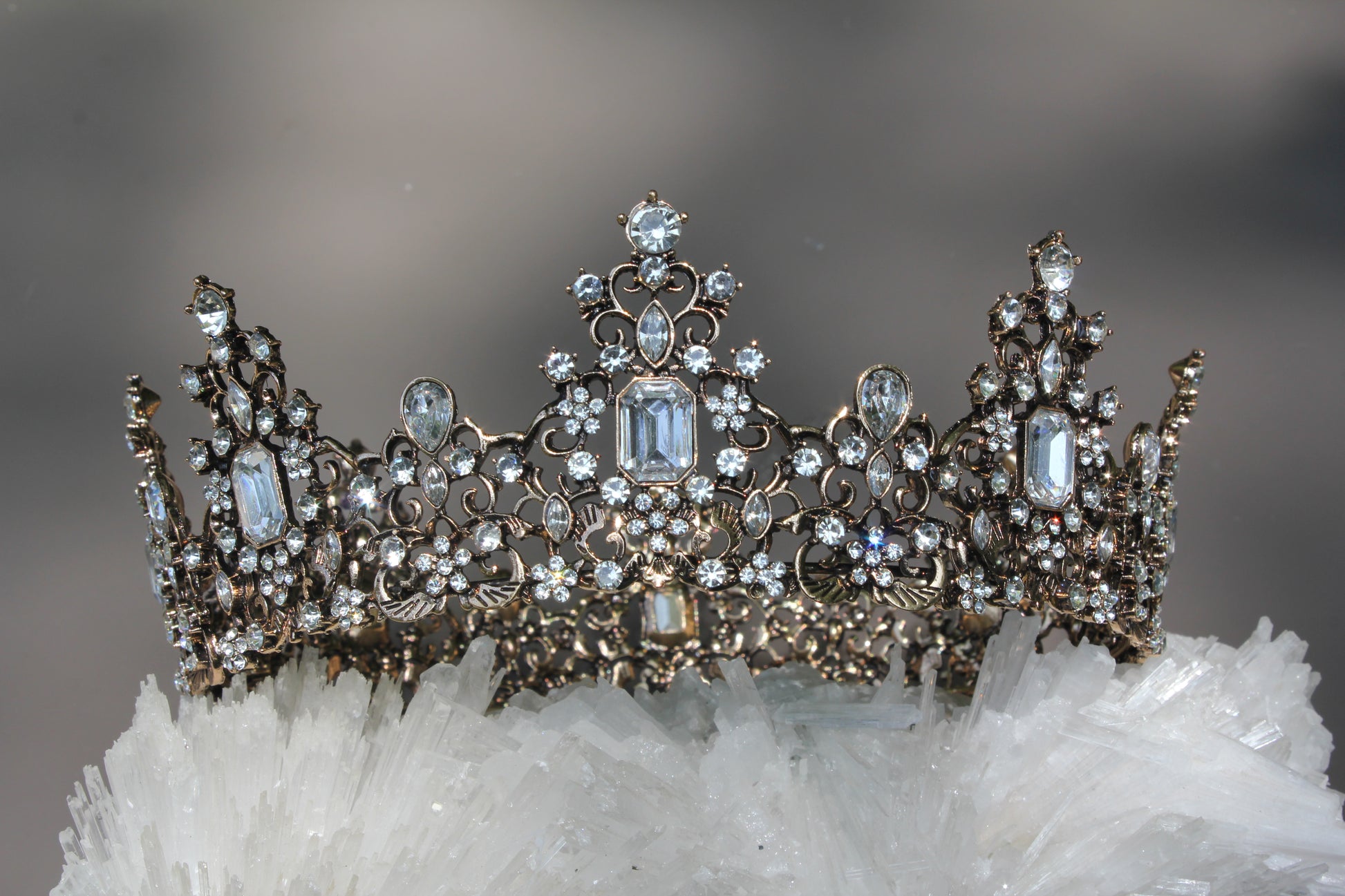 Part of our Costume jewelry line, these crowns and tiaras are also part of our curated collection that we import to sell in our brick and mortar store. You might ask, when and where can I wear this sparkling head piece? Well... it's the perfect accessory for proms, weddings, galas, Renaissance fairs and Halloween. Or, it can be that touch of sparkle on a mantel or shelf as home decor.
