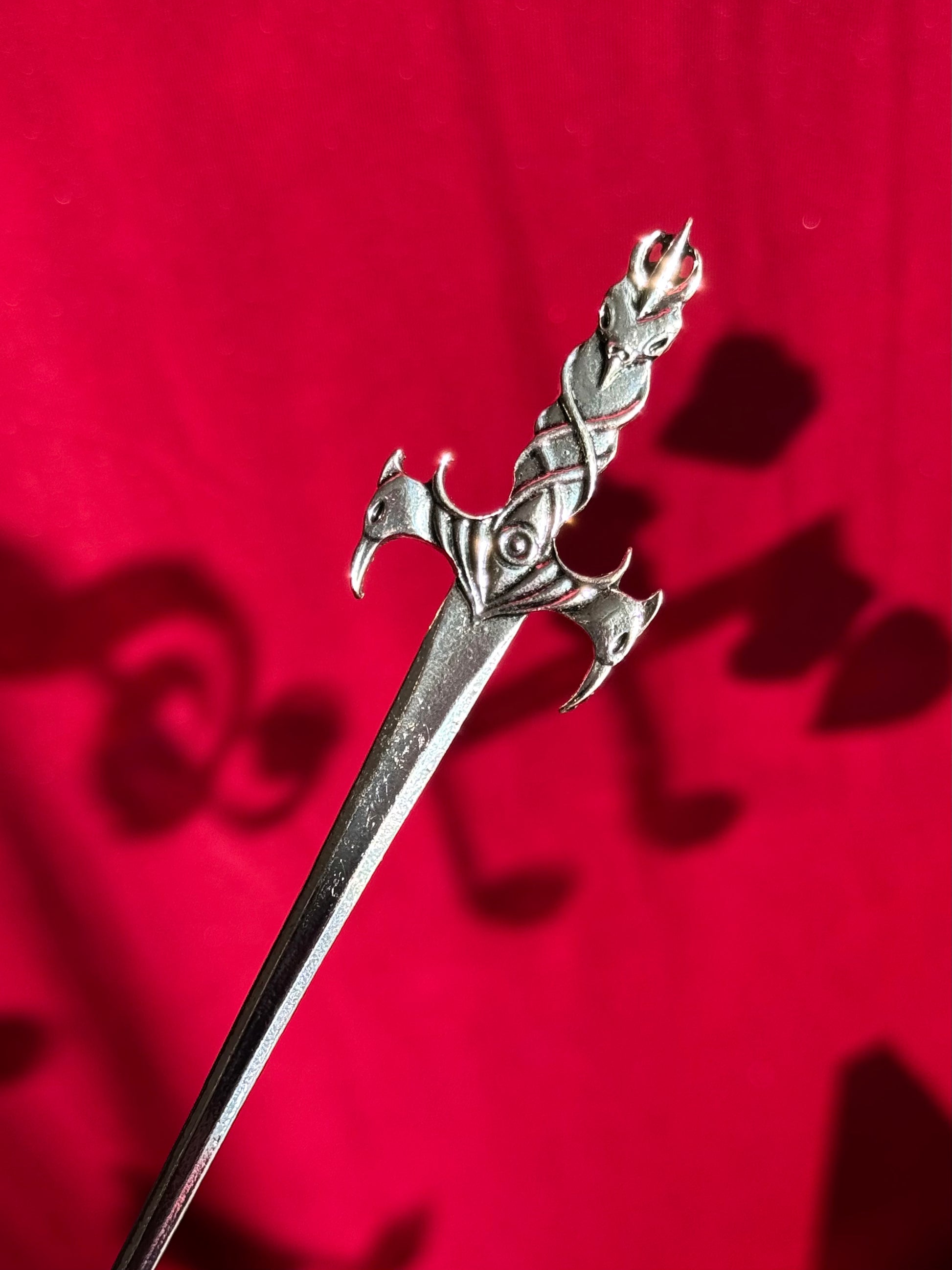 These fun hair sticks are part of our collection of hair accessories that we carry mostly in our brick and mortar store. In this listing you can choose between 4 different hair pins with sword motifs. The hair sticks measure 6-6 1/2".